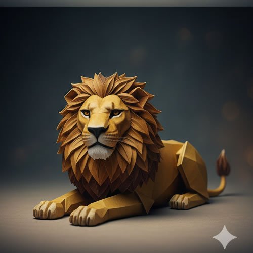 The king of the animal world finds its place among important origami creations. This particular example uses curled tips popularized by the famous origami artist, Shintzu Omahari.